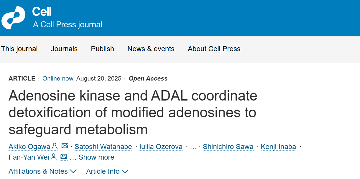 该研究团队系统解析了三种 RNA 来源的修饰腺苷(m6A、m6,6A 和 i6A)的代谢途径,发现它们通过腺苷激酶(ADK)与腺苷脱氨酶样蛋白(ADAL)的协同作用,最终转化为次黄苷酸(IMP),从而减轻其潜在的细胞毒性。