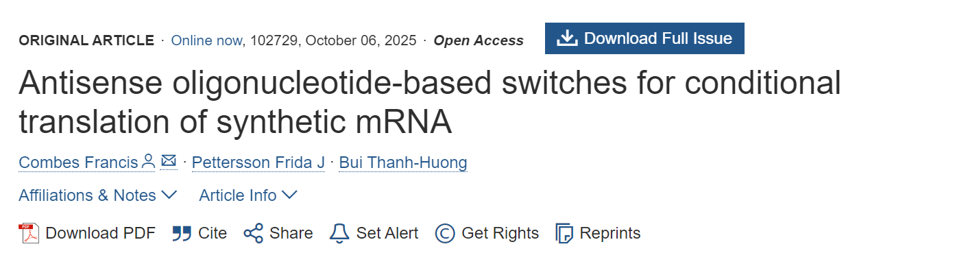 现有为 mRNA 加装“可开关元件”(如小分子依赖开关、核酸适配子传感器、mRNA 自身结构折叠调控等)大多依赖于额外表达调控蛋白、感应元件复杂或可编程性差。若能借助一种仅由寡核苷酸就能“播控” mRNA 翻译开关,理论上更简洁、更模块化、更具可定制性。