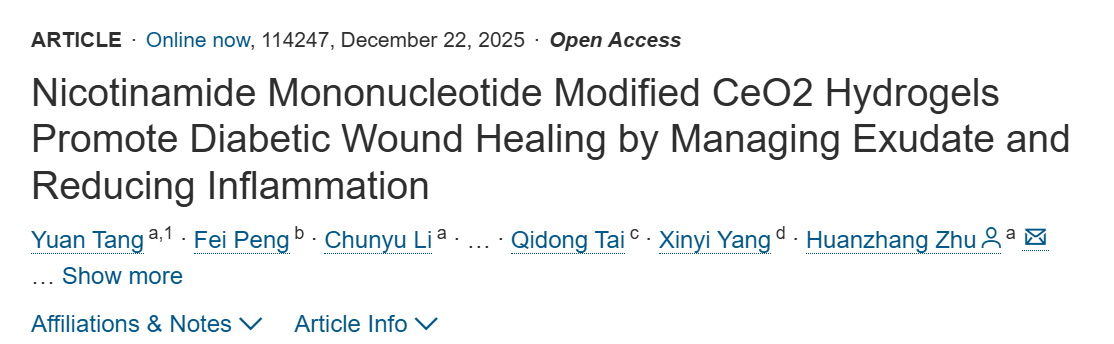 近日,一项发表于顶级期刊的研究为此难题提供了极具前景的解决方案——一种名为 CeO₂@NMN/SA 的多功能气凝胶敷料。该研究不仅展示了其卓越的体内/体外治疗效果,更深入揭示了其背后精妙的分子机制:通过靶向激活关键的长寿蛋白 Sirt1 信号通路,实现对糖尿病伤口微环境的系统性调控。