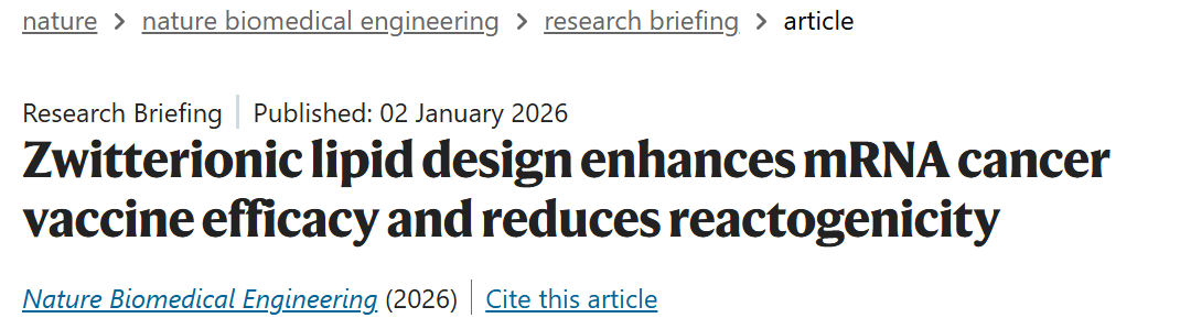 在mRNA疗法的革命性浪潮中,脂质纳米颗粒(LNP)作为关键的递送载体,其性能直接决定了治疗的成败。然而,传统可电离脂质在实现高效递送的同时,往往伴随着显著的炎症反应(即“反应原性”),这不仅影响患者耐受性,更可能削弱免疫治疗效果。近日,一项由赵宇等科学家发表于《自然·生物医学工程》(Nature Biomedical Engineering)的突破性研究,通过理性设计一种名为“膜破坏性两性离子”(Membrane-Destabilizing Zwitterionic, MeDZ)的新型脂质,成功在增强mRNA翻译效率与最小化LNP反应原性之间取得了前所未有的平衡,为下一代mRNA癌症疫苗的开发开辟了新路径。