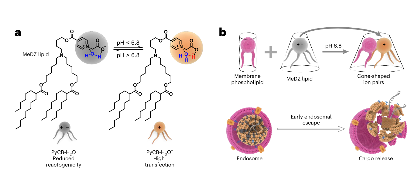 这项研究不仅报道了一种性能卓越的新型脂质MeDZ,更重要的是,它验证了“两性离子设计”作为一种通用策略的巨大潜力。通过精确调控脂质头基的化学结构,可以赋予LNP前所未有的环境响应智能,从而解耦递送效率与毒性的固有矛盾。