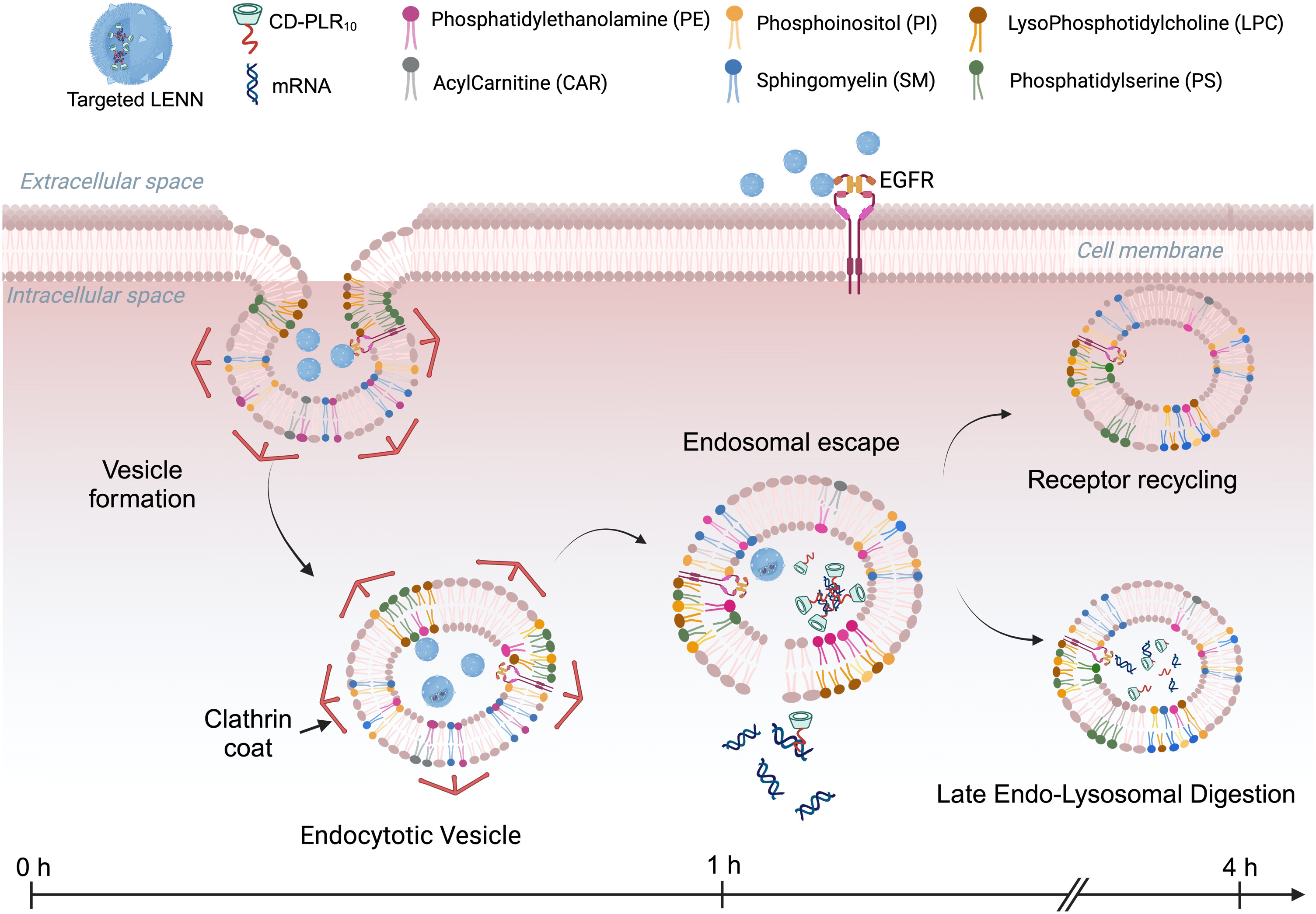 除了应用优势,该研究还深入探索了LENN的细胞内化机制。通过脂质组学分析,研究团队首次发现细胞磷脂生物合成的上调在纳米颗粒内化和内体逃逸中扮演关键角色。靶向LENN处理的细胞显示出显著的磷脂酰丝氨酸(PS)和磷脂酰乙醇胺(PE)水平变化,这些脂质参与膜弯曲和内吞囊泡形成,为理解纳米载体-细胞相互作用提供了新视角。