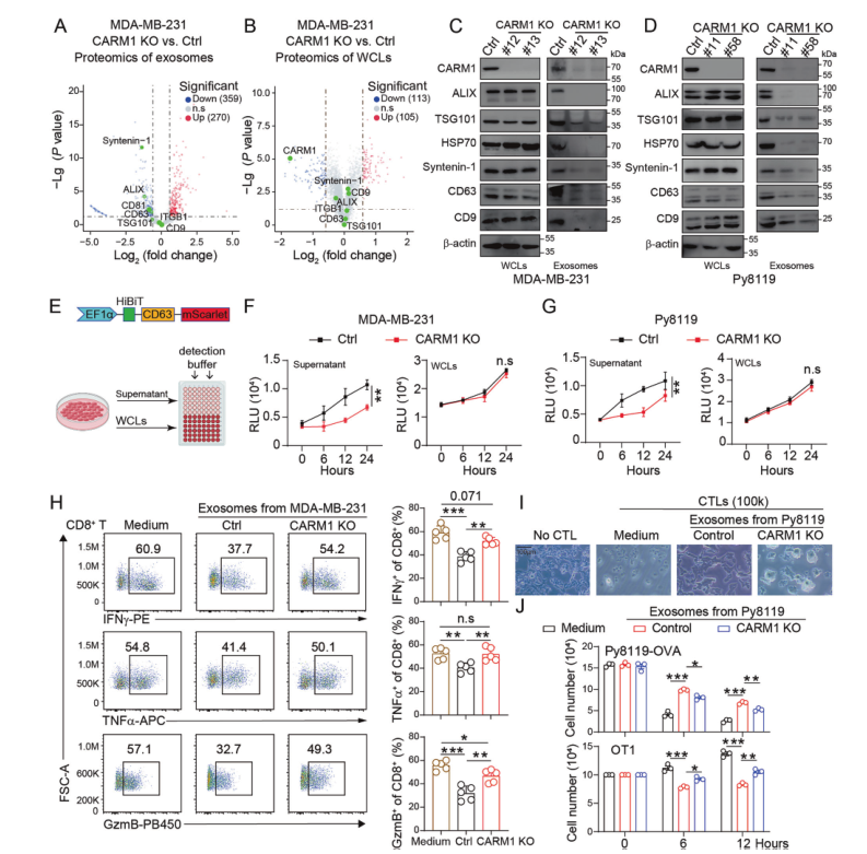 外泌体,这些直径仅为30-150纳米的细胞外囊泡,曾被视为细胞排泄废物的“垃圾袋”。 如今,它们被重新定义为细胞间通讯的关键创意,在肿瘤与免疫系统“暗战”中扮演着不可忽视的角色。研究团队发现,乳腺癌细胞通过CARM1(辅激活因子相关精氨酸甲基转移酶1)这个“分子”,精准调控外泌体的生成与内容物分选,尤其是一种名为次黄嘌呤的代谢物被大量富集其中。
