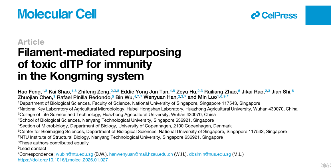 在生命进化的战场上,细菌与噬菌体的战争已持续了数十亿年。这场微观世界的军备竞赛催生了令人惊叹的防御机制,从大家熟知的CRISPR系统到最近发现的CBASS和Thoeris系统,细菌的免疫工具箱远比我们想象的更为丰富。然而,最新发表在《Molecular Cell》上的一项突破性研究揭示了一种前所未有的防御策略——细菌不仅将有毒代谢物重新定义为免疫信号,还通过精妙的丝状结构设计实现了超敏感检测。这就是Kongming(孔明)系统,一个以三国时期军事策略家命名的细菌"免疫智慧"。