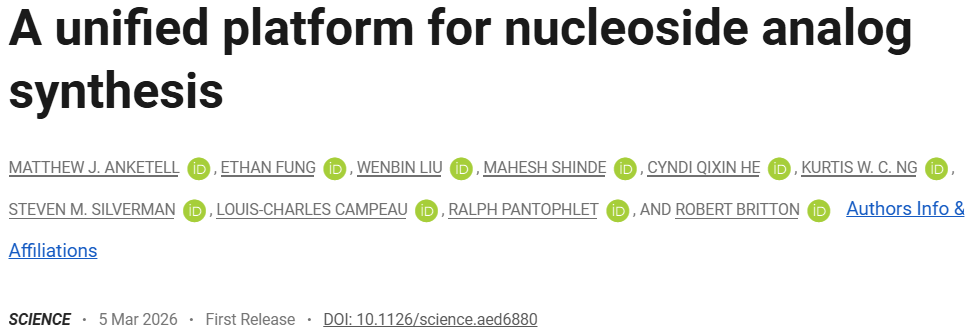 尽管核苷类似物具有重要的临床价值,但其化学空间的系统探索长期受限于合成瓶颈。核苷分子极性高、易被酶降解,需通过结构修饰提升药效、靶向性、细胞摄取效率与代谢稳定性;而传统合成策略步骤冗长、转化繁琐,难以实现高效的结构多样化构建。此外,核苷合成中广泛采用的沃布吕根(Vorbrüggen)偶联反应仅适用于 N - 连接核苷,且易生成异构体混合物,进一步制约了核苷类似物的高效合成与结构拓展。