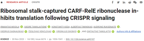 图源:Ribosomal stalk-captured CARF-RelE ribonuclease inhibits translation following CRISPR signaling,doi:10.1126/science.adj2107