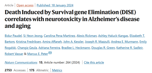 图源:Death Induced by Survival gene Elimination (DISE) correlates with neurotoxicity in Alzheimer’s disease and aging