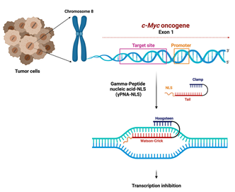 本研究的详细探索不仅建立了序列特异性DNA靶向γ - PNA的c-Myc抑制剂的可行性和有效性,而且将其定位为癌症治疗领域独特而有前途的治疗策略。这一发现为精准医学开辟了新的视野,强调了这种创新方法在解决基因组DNA水平上的癌基因靶向复杂性方面的潜力。