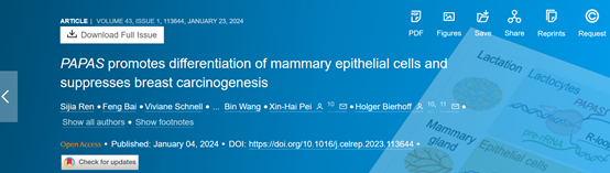 图源:PAPAS promotes differentiation of mammary epithelial cells and suppresses breast carcinogenesis,DOI:10.1016/j.celrep.2023.113644